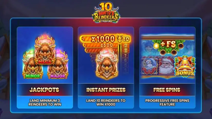 Definitely, our platform offers the opportunity to enjoy a demo version of 10 Santa’s Reindeers without any need for signing up. Moreover, any online casino that collaborates with Push Gaming would grant users unrestricted entry to the test mode, completely free of charge.