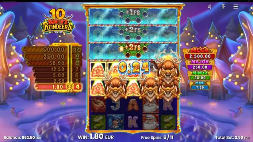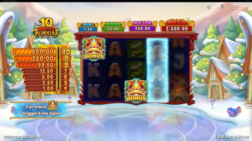 €/$0.10 per spin is a starting bet in the 10 Santa’s Reindeers