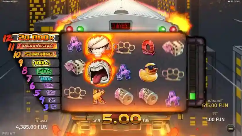 In 12 Burning Baseballs, the maximum win is 20,000 times the bet placed during the round.