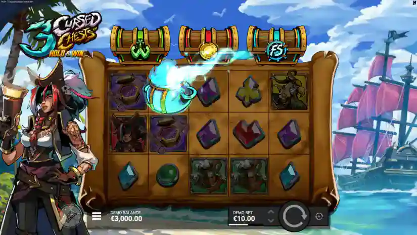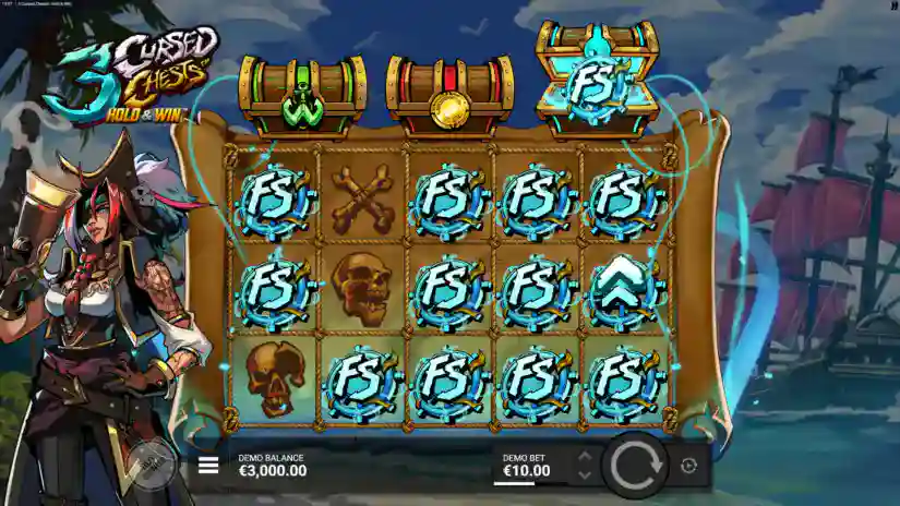 Set sail with Anne Bonny and her ship, the Red Vengeance, in 3 Cursed Chests: Hold & Win from Hacksaw Gaming. This 5-reel, 3-row slot features paylines. Search and find the maximum win of 2,500x your bet, achievable in all game modes.
