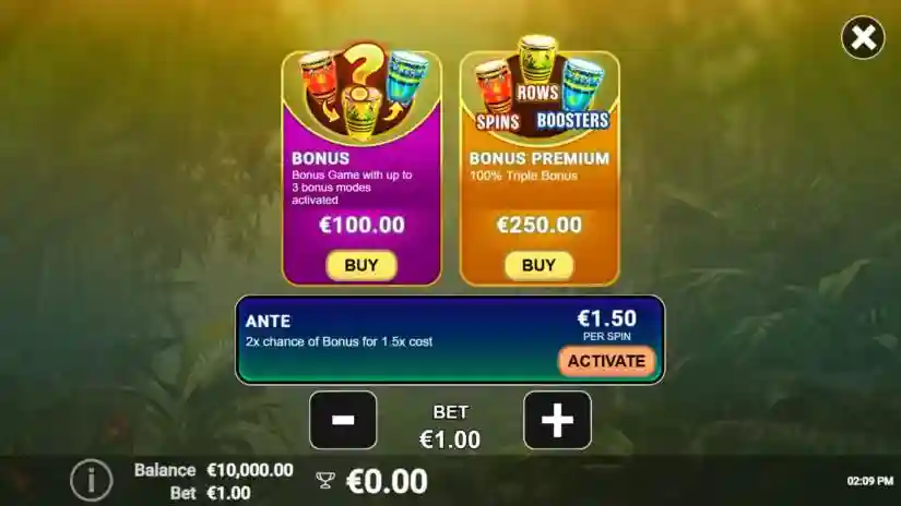 The maximum win in 3 Jungle Beats is capped at 10,000x the bet. If the maximum win for a round reaches 10,000x the bet, the round ends immediately, the payout is made up to the set limit, and all remaining features are terminated.