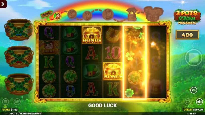Up to 15,625 winning combinations can be made in each spin in 3 pots o’ riches megaways! Wins are paid for adjacent symbols from left to right, regardless of their size. Megaways™ is used under license from big time gaming.