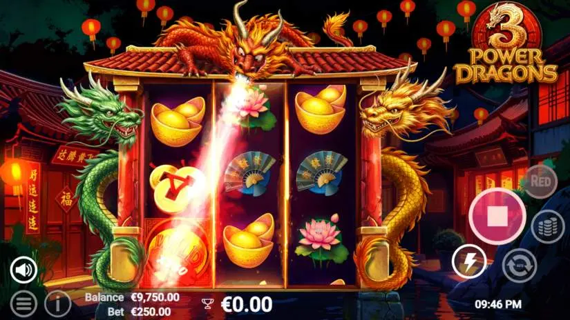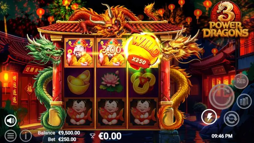 The maximum win in 3 Power Dragons is capped at 15,000x the bet. If the maximum win in a round reaches 15,000x the bet, the round ends immediately, the winnings are awarded within the set limit, and all other features are disabled.