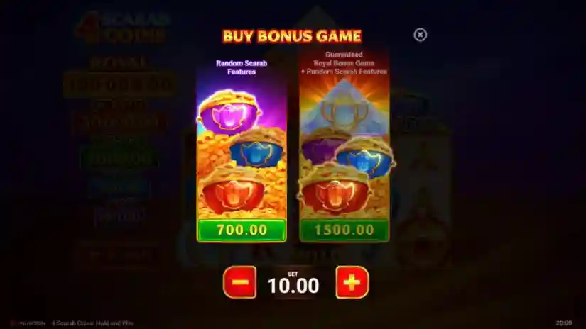 In the Royal Bonus Game, the Royal Scarab Coin receives a random value: 7x, 8x, 9x, or 10x.