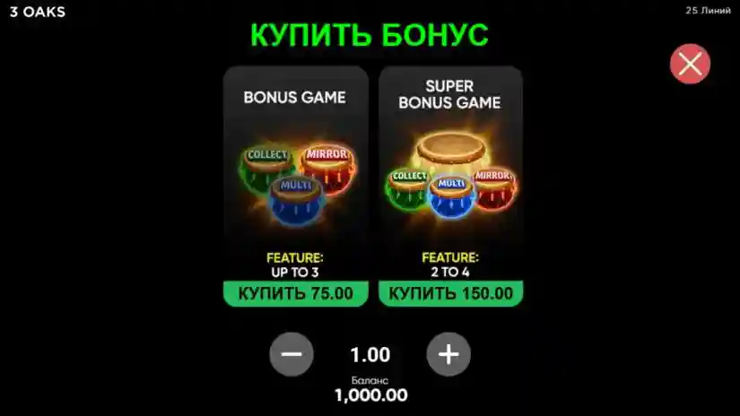 The player can also purchase a Bonus Game. The Bonus Game is activated after purchase. The player cannot purchase a Bonus Game if there are insufficient funds in the balance. The Bonus Game is played at the bet of the spin that triggered it.