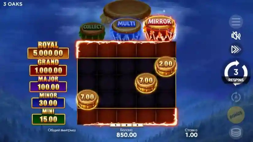 All BONUS symbols remain on the reels until the end of the Bonus Game. The Bonus Game continues until the end of the re-spins or until the entire playing field is filled with symbols. After the Bonus Game ends the values of all symbols are added up and the winnings are paid out.