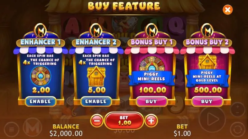 For a five-fold bet, the chance of activating the full feature on the Gold level is quadrupled. The theoretical RTP for this game mode is 96.6%.