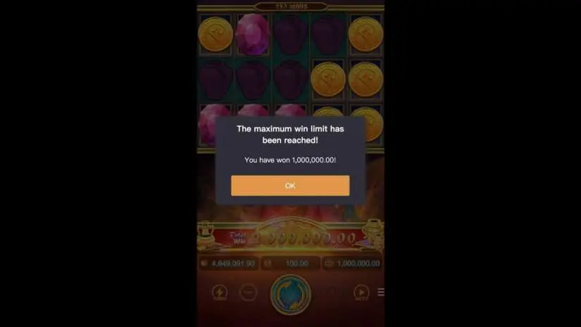 The maximum win in Alibaba’s Cave of Fortune is 10,000x the bet. If the total win in the main game or free spins reaches 10,000x the bet, the spin ends.