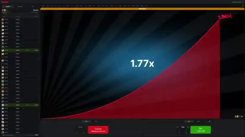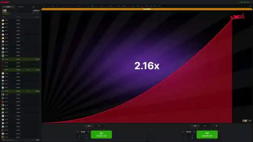 - On the left side of the game interface (or under the betting panel on mobile devices) is the current bets panel. Here you can see all bets placed in the current round.