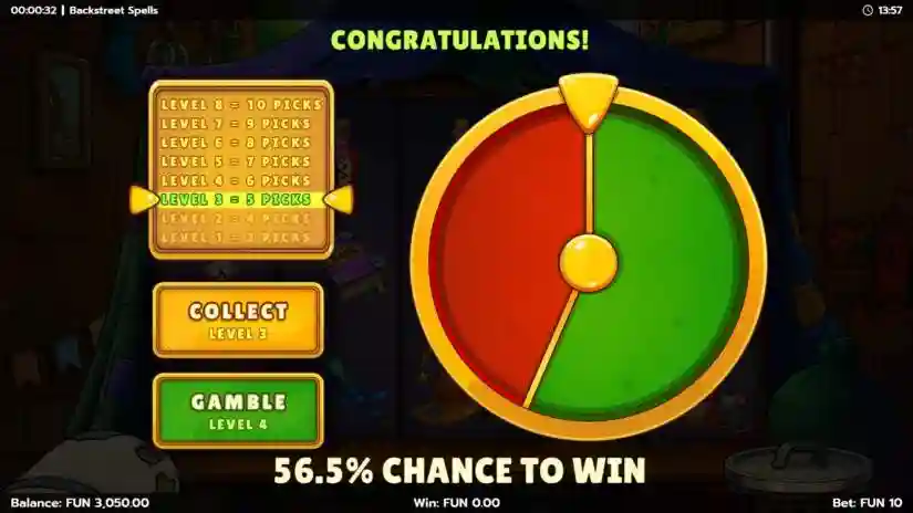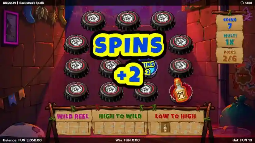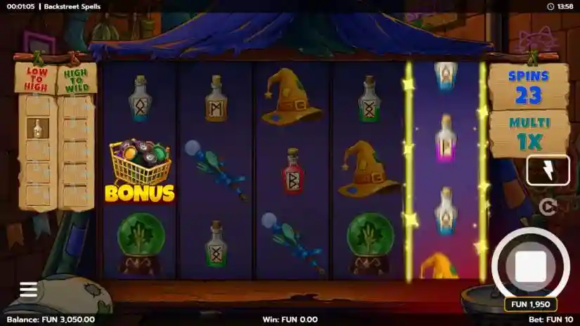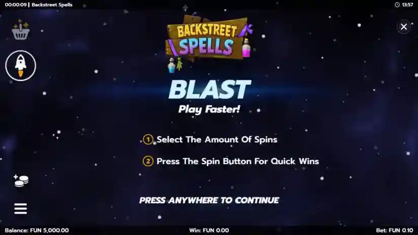 Win up to 5,000 times your bet in Backstreet Spells! When 5,000x your bet is won, the round ends and the winnings are paid out.