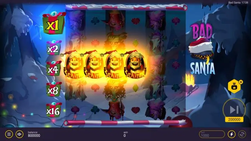 Welcome to Bad Santa from Peter & Sons, a high-volatility video slot featuring Scatter Pays, cascades, powerful free spins, unlimited multipliers, and a Multiplier Jump feature.
