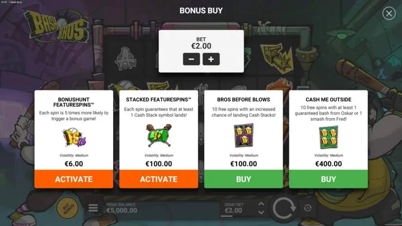 The maximum win that can be achieved in Bash Bros 10,000 is multiplied by the current bet level. The maximum win can be achieved by activating certain combinations and/or features.