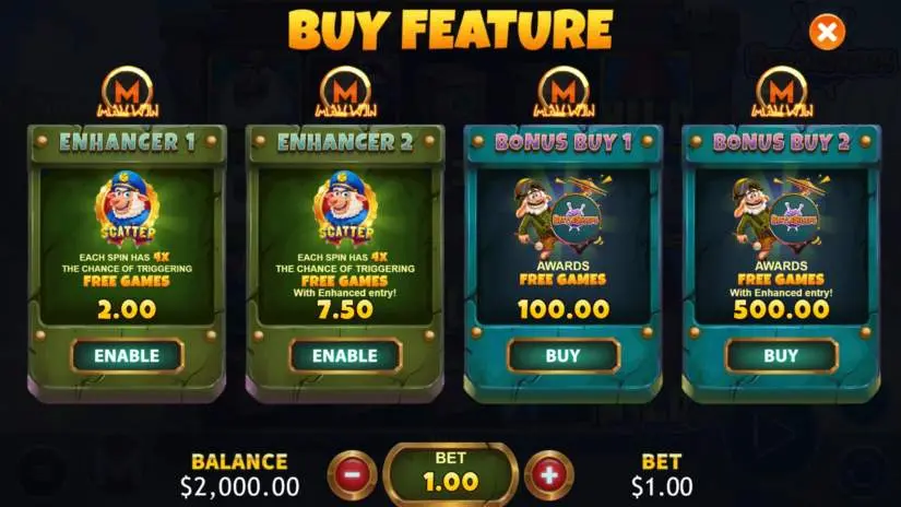 In this game, the maximum possible win is doubled depending on the selected mode. The standard MAXIMUM WIN is 15,000x, while DOUBLE MAXIMUM is 30,000x. All game boosters and bonus purchases have DOUBLE MAXIMUM winnings.