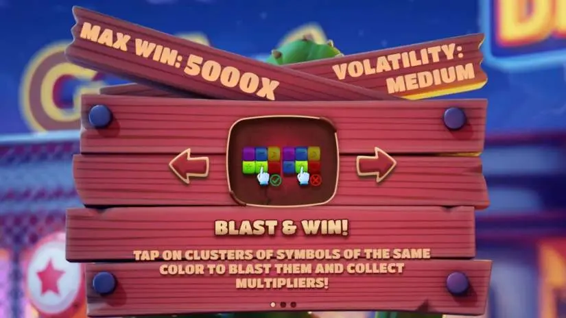 To play, players must select a bet amount and place a bet. The bet can be cancelled before the first cluster is destroyed. After placing a bet, players can destroy clusters of two or more elements of the same color. After each cluster is destroyed, players can receive multipliers up to x500, which multiply their bet, and multipliers from destroying different clusters are multiplied. The larger the cluster, the higher the possible multiplier. After a cluster is destroyed, new symbols fall from above, filling the empty spaces.