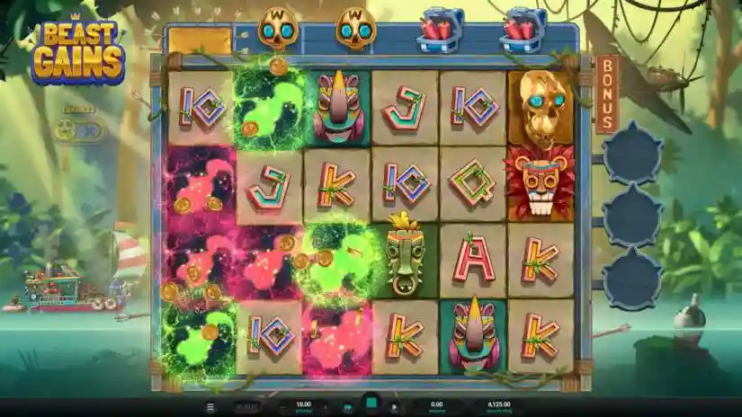 Win up to 25,000 times your bet in Beast Gains! If the sum of all values reaches 25,000 times your bet or higher, the round ends and the player receives 25,000 times their bet.