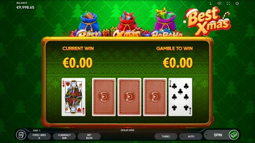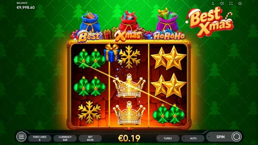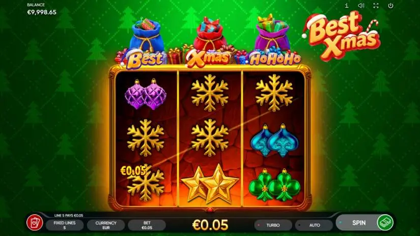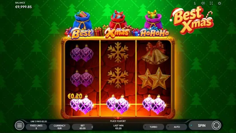 BEST XMAS is a 3-reel, 3-row, and 5-payline slot from Endorphina. All prizes are awarded for matching combinations of symbols. Symbols must be on paylines and adjacent reels, starting with the leftmost one.