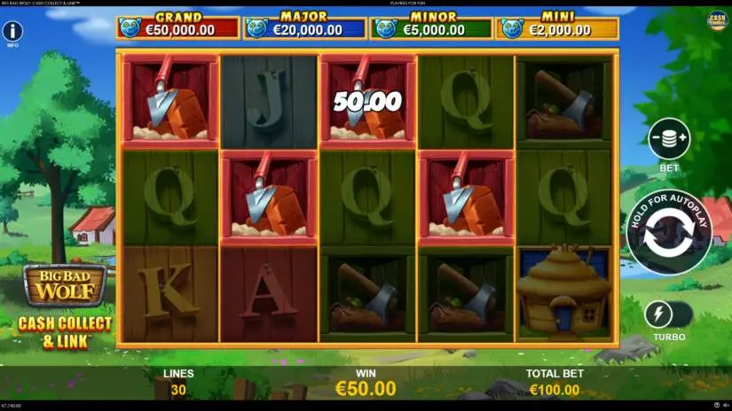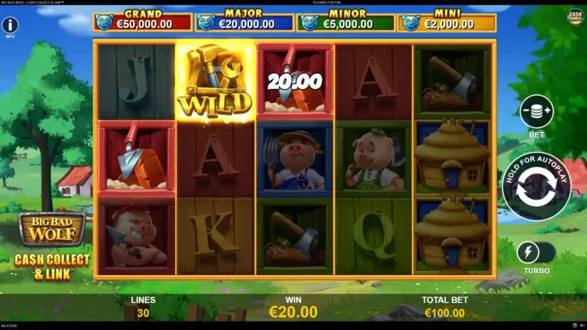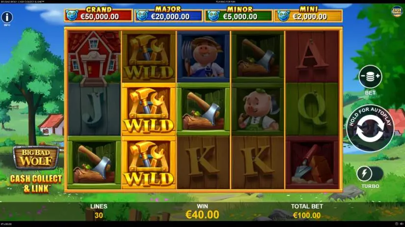 Big Bad Wolf: Cash Collect & Link features 30 fixed paylines. Paylines are represented by lines that appear above the reels, as illustrated in the paytable. Winning combinations must begin on the leftmost reel, and the same symbol must appear on consecutive reels along the same payline.
