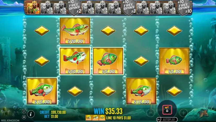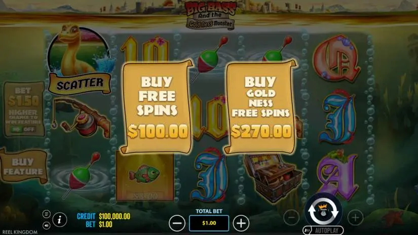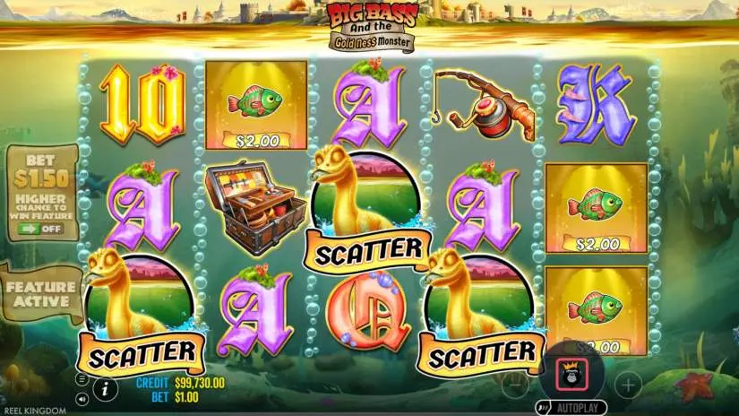 All symbols in Big Bass and the Gold Ness Monster from Reel Kingdom and Pragmatic Play pay from left to right on adjacent reels, starting with the left-most reel.