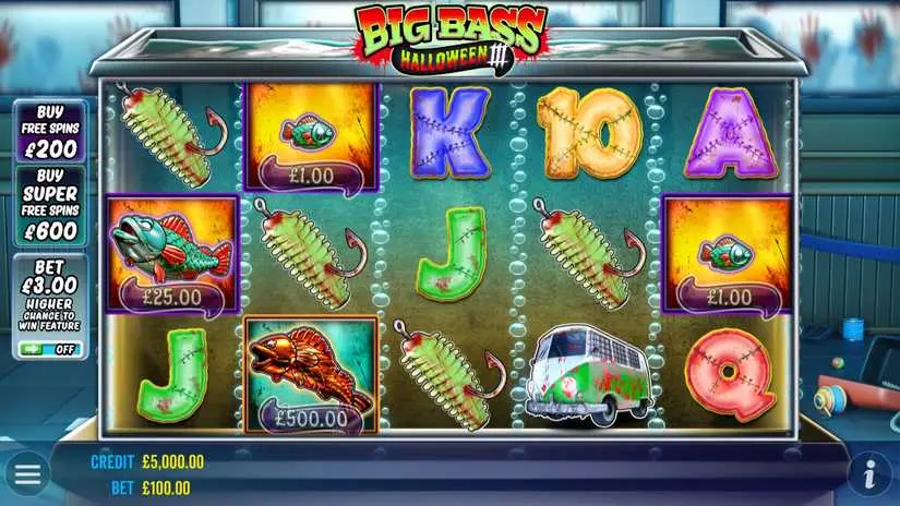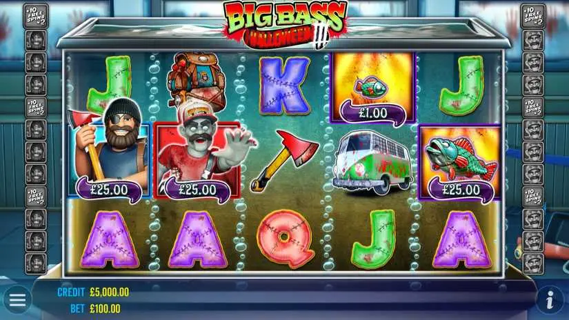 The fisherman returns in the post-apocalyptic slot Big Bass Halloween 3, where 3 to 5 scatters trigger a bonus game with 15-25 free spins. All symbols in Big Bass Halloween 3 from Reel Kingdom and Pragmatic Play pay from left to right on adjacent reels, starting with the leftmost reel.