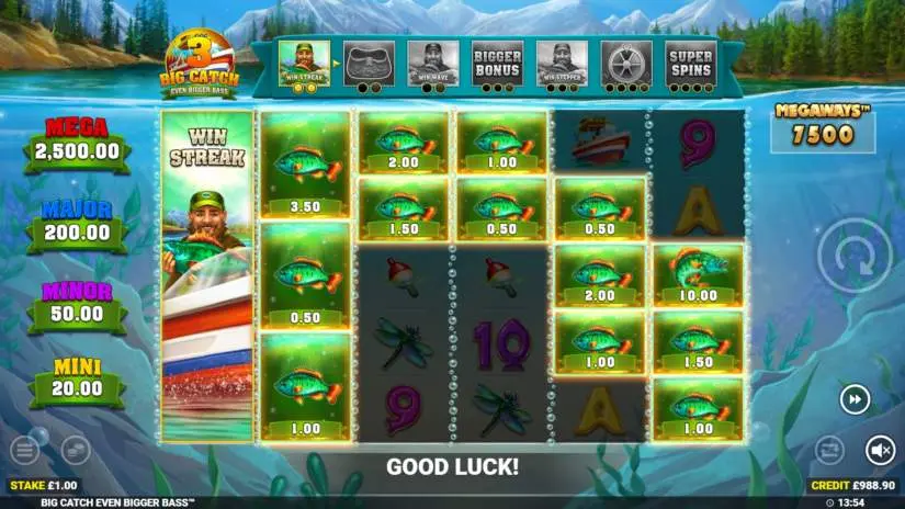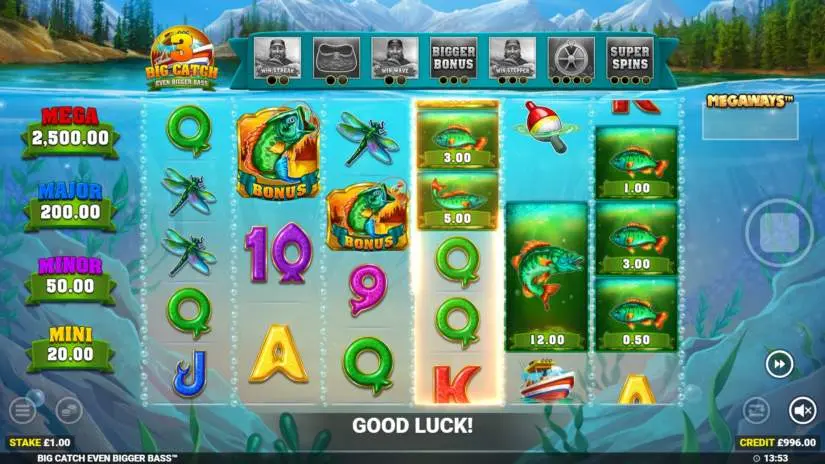 Each reel in Big Catch Even Bigger Bass 3 can show up to 5 symbols. Each spin can have up to 15,625 ways to win! A win is a match of consecutive symbols, regardless of height, from left to right, starting with the leftmost reels. Only the highest one is paid. Win in each direction. All winning combinations are summed up megaways™ under the big time gaming license.