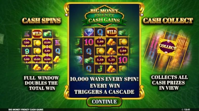 Every spin in Big Money Frenzy Cash Gains can have up to 10,000 ways to win!