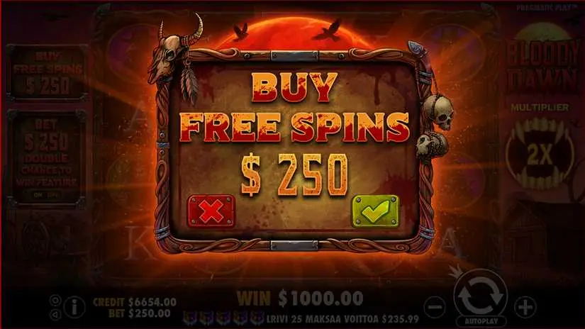 Definitely, our platform offers the opportunity to enjoy a demo version of Bloody Dawn without any need for signing up. Moreover, any online casino that collaborates with Pragmatic Play would grant users unrestricted entry to the test mode, completely free of charge.