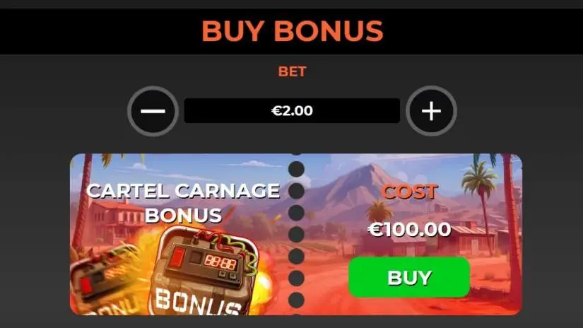 Players can pay 50x the bet to purchase access to the “CARTEL CRASH” BONUS with their chosen bet amount. The RTP for the “Buy Bonus” option is 94.0%.