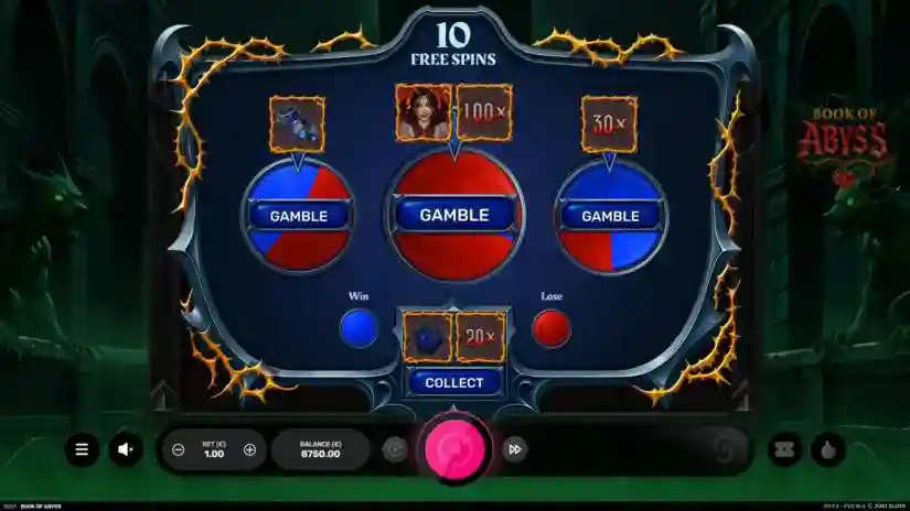 The maximum win in Book of Abyss is capped at 150,000 times the base bet. If the total win for a round reaches this amount, the round ends.