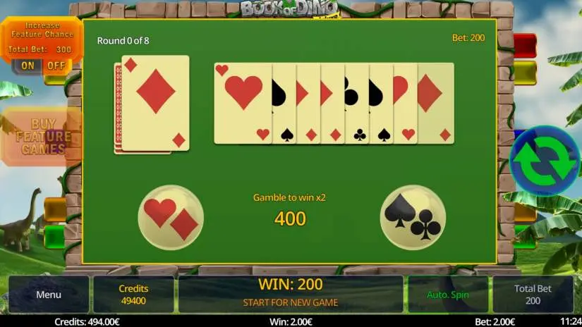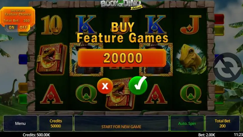 Activating the Increase Feature Chance toggle multiplies the bet per round by 1.5 and increases the chance of triggering bonus games. Increase Feature Chance can only be enabled outside of a feature round.
