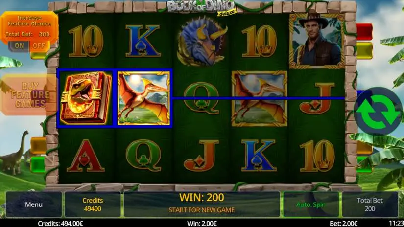 Book of Dino Deluxe’s 5 paylines pay left to right on adjacent reels, excluding the Scatter symbol. Only the highest combination on a payline pays out. Wins across paylines are cumulative.