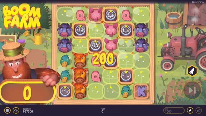 Welcome to Boom Farm! A medium volatility video slot with Scatter payouts, cascades, cash prizes and exciting free spins.