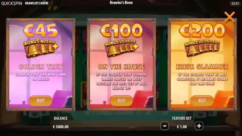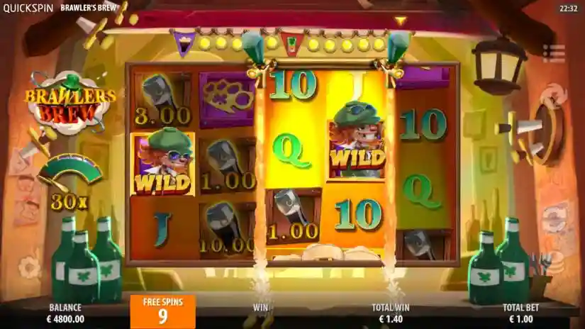 Brawlers Brew is a 3-reel, 5-line, 10-win game from Quickspin. It features a Beer Collection feature, a Lucky Upgrade, and three different free spins, including Golden Tray, On the House, and Irish Slam.