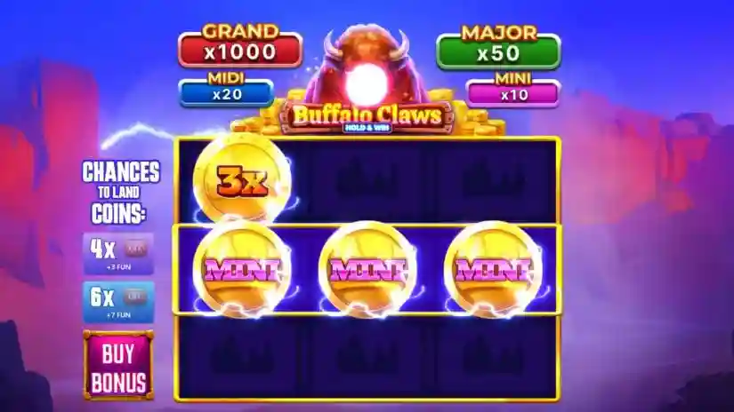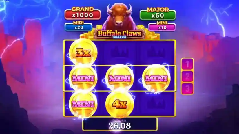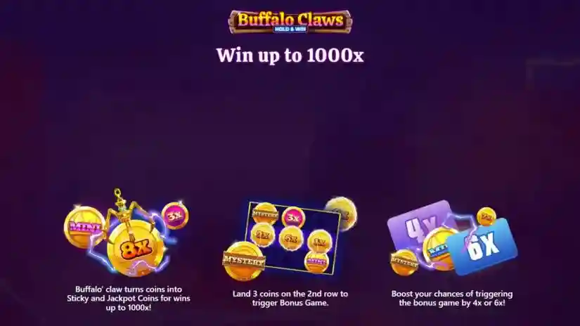 The maximum win in Buffalo Claws by Clawbuster is capped at 1,000 times the bet. If the total win in a round reaches 1,000 times the bet, the round ends immediately, the winnings are awarded up to the set limit, and all remaining features are cancelled.