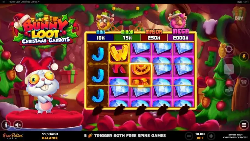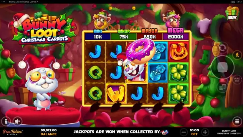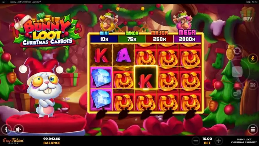Bunny Loot: Christmas Carrots is a 5-reel, 3-row slot from Pear Fiction Studios. The goal is to spin the reels until a winning combination appears. Winning combinations are highlighted on the reels and pay out.