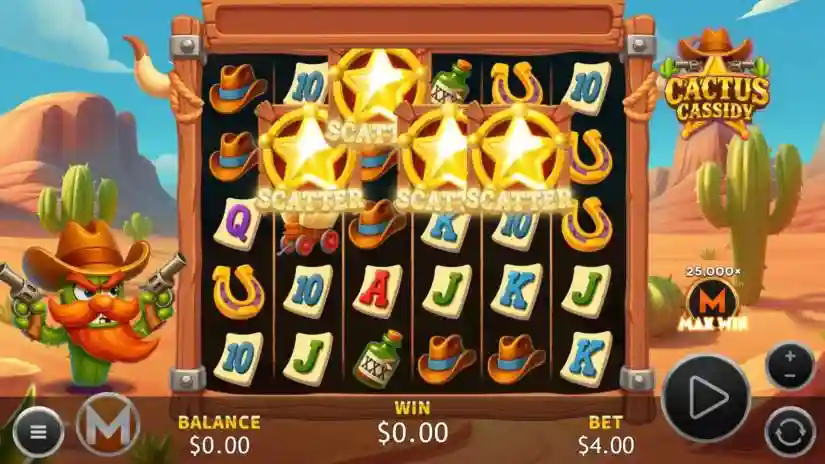 Massive Studios’ Cactus Cassidy slot features a 6×4 grid and pays out across 20 paylines.