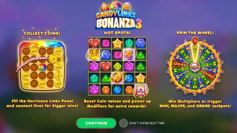 Immerse yourself in a dazzling world of sweets, where every spin is filled with “hot spots” and surprises. In Candylinks Bonanza 3 from Stakelogic, vibrant sweets illuminate the reels, and golden coins fall onto the “Hurricane Links” panel, waiting to line up into sparkling winning lines. With each spin, “hot spots” add extra magic, cloning coins, increasing their value, or activating special modifiers for even bigger wins.