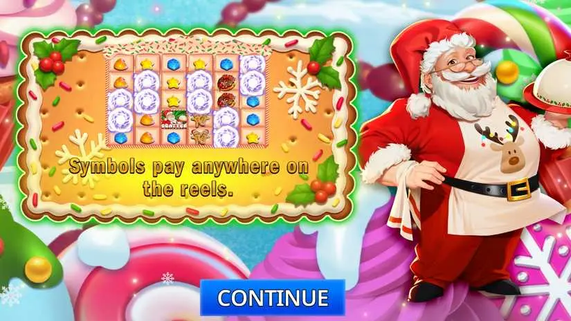 Symbols in Candyman Santa pay out anywhere on the reels. The total number of matching symbols on the reels at the end of the spin determines the winning amount.