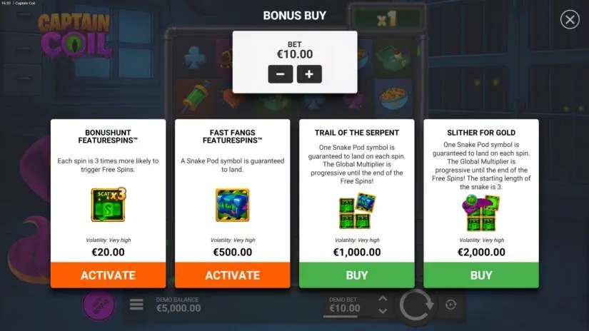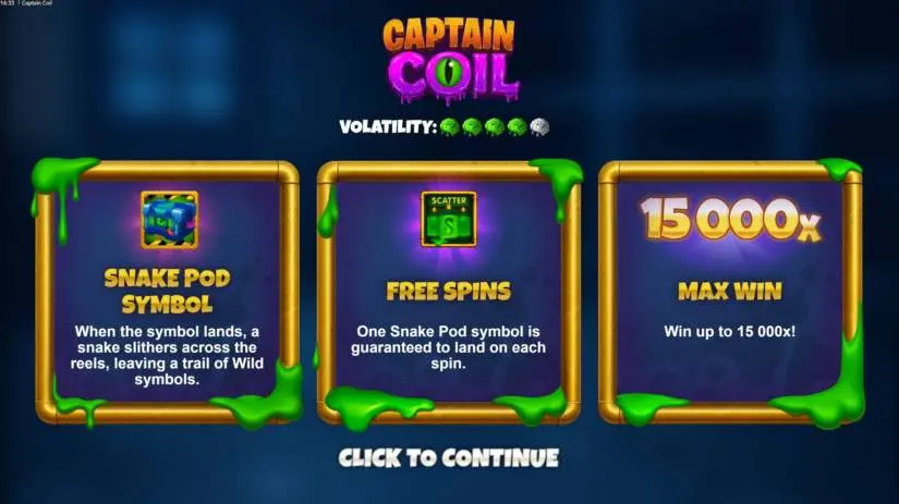 In the main game, the Snake Capsule symbol can appear at any time, sliding across the reels to create Wild symbols and adding multipliers to the Global Multiplier when crossing Wild symbols or itself. Trigger bonus spins to guarantee a Snake Capsule symbol on every spin. Collect food symbols to extend the Snake’s length and increase your chances while the Global Multiplier grows throughout the feature. With a unique snake mechanism, expanding multipliers, and a maximum win potential of 15,000x your bet, “Captain Coil” is packed with energy and excitement. The maximum win is available in all bonus game modes.