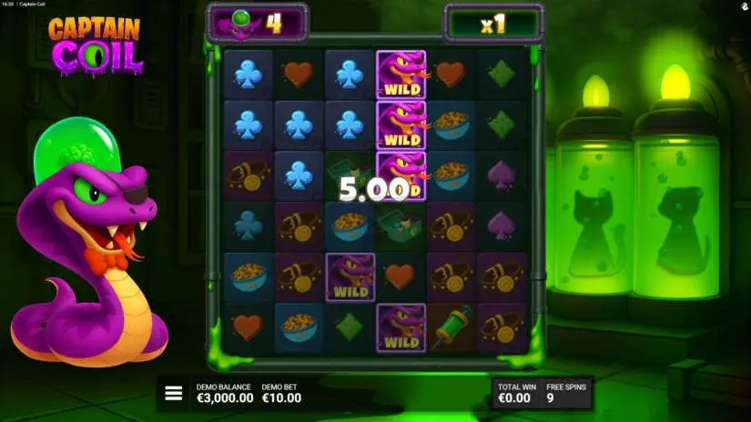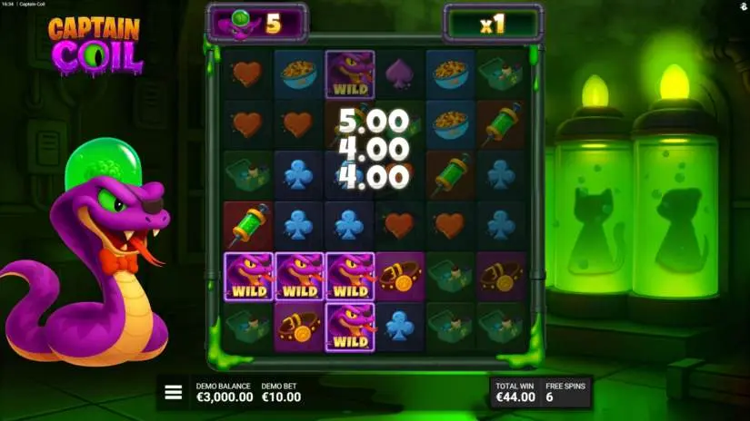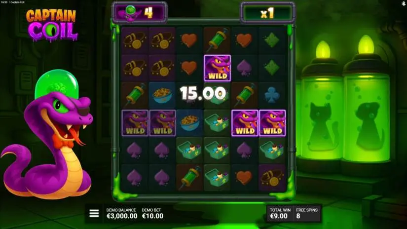 Crawl to victory with “Captain Coil” from Bullshark Games and Hacksaw Gaming! Enter the cascading cluster game, where wild Snakes slither across the grid, creating clusters and increasing your chances with powerful multipliers. Match 5 or more symbols to win, and watch as each cascade brings new surprises.