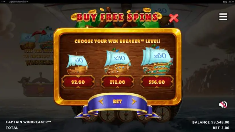 Some settings and features may not be available in this game. Purchase free spins with a Win Breaker™ value of x10, x30, or x60. The current Win Breaker™ value is not used when purchasing free spins. Activating this feature will immediately trigger the free spins feature. Free spins are purchased at the price specified for the current bet. Click the “Close” button to return to the main game. This feature is only available in the main game.