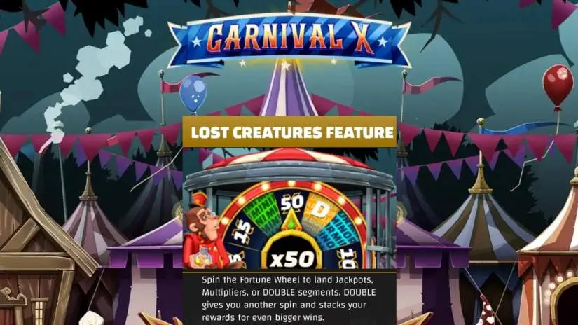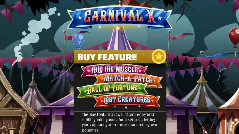 Carnival X is an interactive and dynamic slot consisting of a main game where players can bet on one of four multipliers or one of four mini-games.