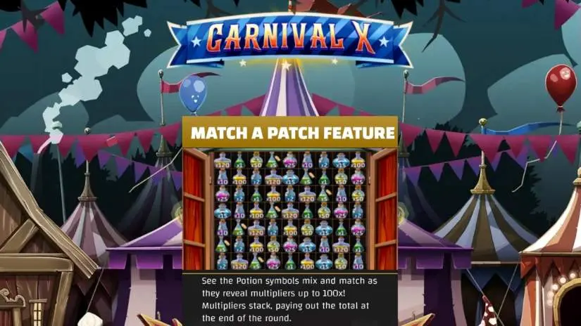The maximum simulated payout in Carnival X is 10,000X the total bet reached over 1,000,000,000 simulated spins.