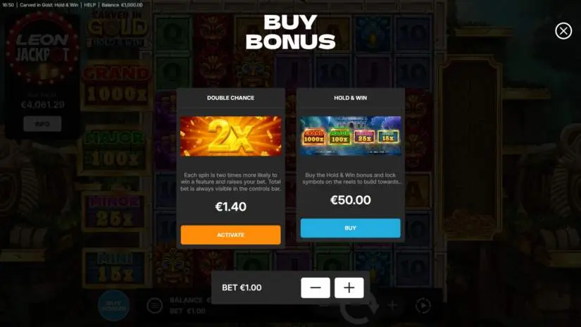 To activate the Double Chance feature, click the “Buy Bonus” button and select “Activate” on the Double Chance card. To deactivate the feature, click the “Deactivate” button on the control panel.