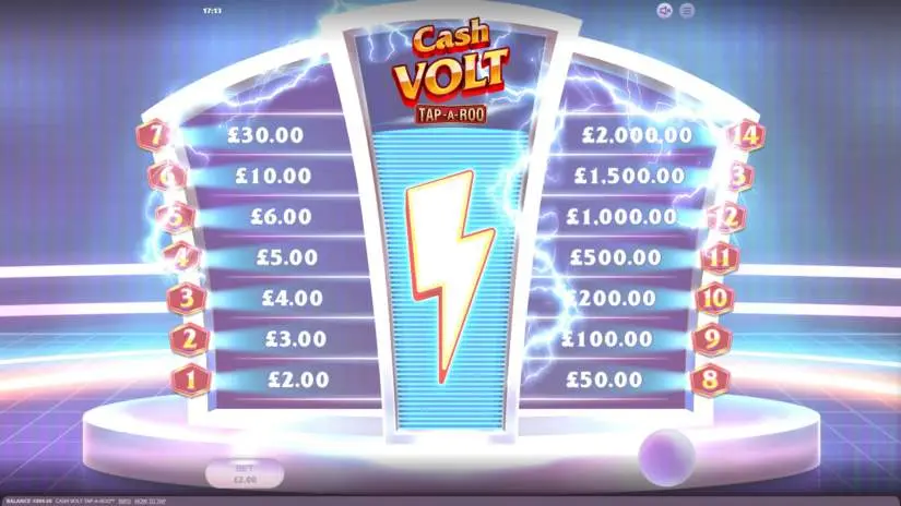 Every time you place a bet, the Lightning Bolt in Red Tiger Gaming’s Cash Volt Tap-A-Roo charges up to a random level of energy. When fully charged, a random number of ladder steps are activated, starting with the bottom one, and a prize is awarded for the last step reached. The energy accumulation is for visual amusement only and does not affect the Lightning Bolt’s activation, which is random.
