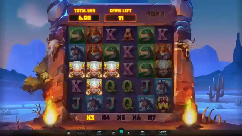 Re-spins are triggered when the special Re-spin Wild symbol is part of a winning combination. Winning symbols remain in place, while all remaining symbols are removed and replaced with new ones. Re-spins continue until no new winning symbols appear or until the game board is full. The multiplier starts at x1 and increases by +1 with each Re-spin. The total multiplier is applied to the total Re-spin win at the end of the bonus game.