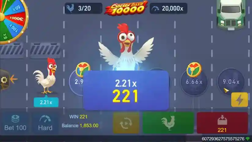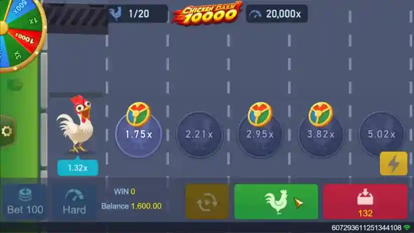 Before you start playing Chicken Dash 10000, you can set your risk; this affects the “level length” and “maximum level multiplier.”