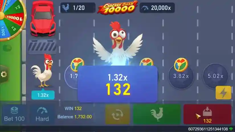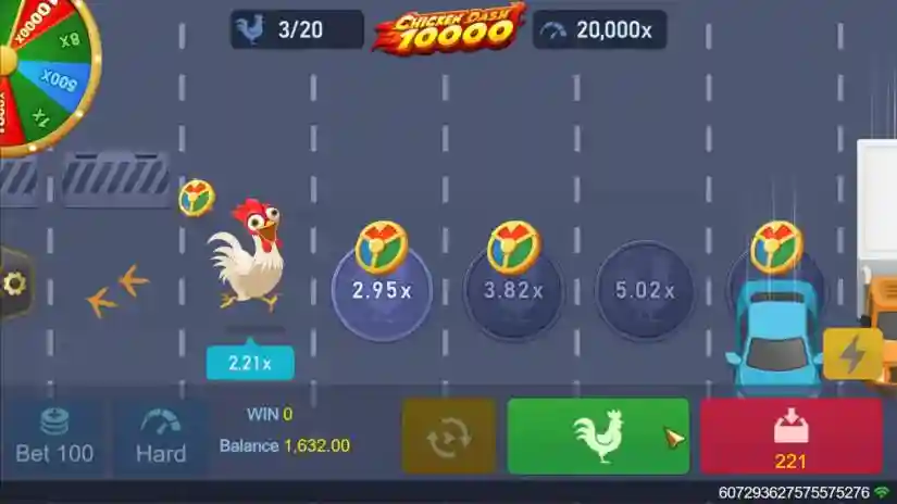 The current accumulated multiplier is displayed below the chicken; it continuously increases as the chicken moves forward.