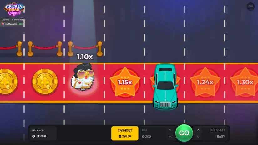 The legendary chicken trades traffic for neon lights and high stakes in this exciting new Chicken Road series. Players choose their bet, risk level, and guide the fearless chicken along the glittering Las Vegas Strip, filled with coins, machines, and endless opportunities to win big.