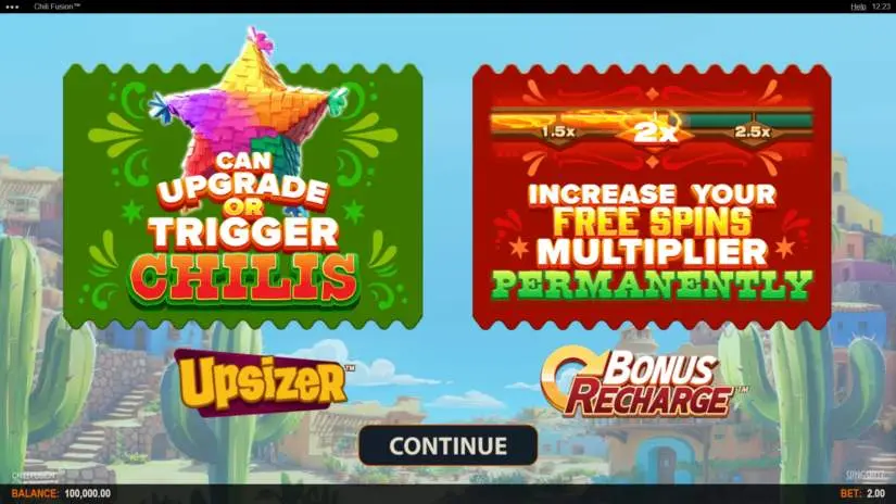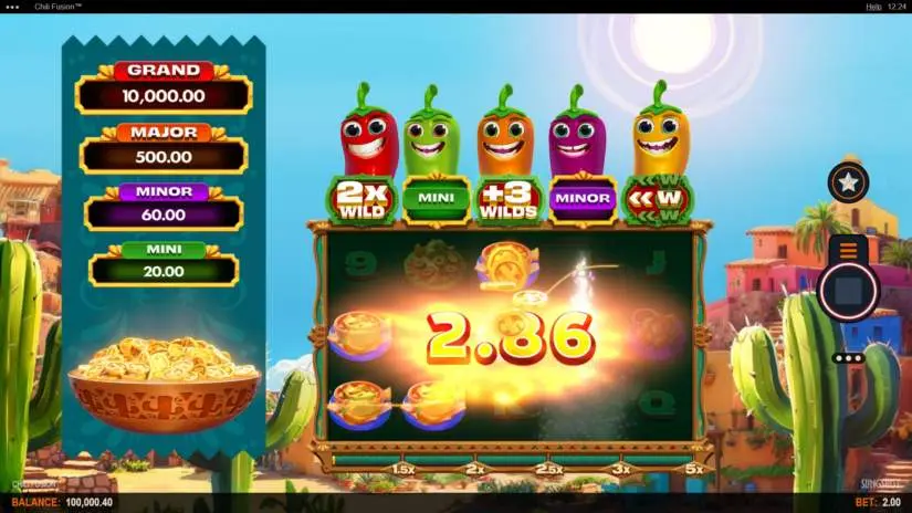 Chili Fusion by Slingshot Studios is a 5-reel, 3-row slot machine. The goal is to spin the reels until a winning combination appears. Winning combinations are highlighted on the reels and pay out.