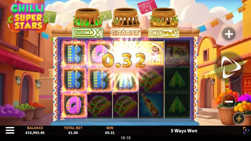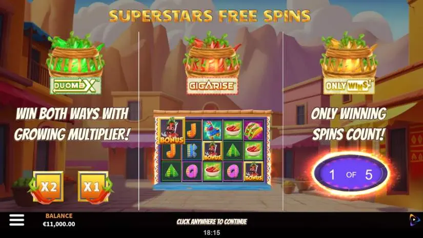 Welcome to the Chili Super Stars Video Slot from Boomerang Studios. It features 5 reels, 3 rows, and the following features: